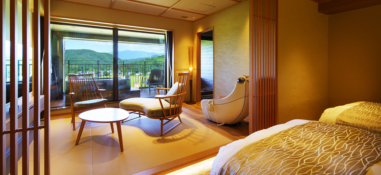 展望露天風呂に加え、客室にサウナ(3名定員)と水風呂を完備。サウナはセルフロウリュも可能なドライサウナ、水風呂は約16℃を常に維持しております。雄大な越後平野を一望しながら外気浴で整えます。 ダブルベッドツインと6畳リビングを完備した約63㎡客室お部屋には人気のReFaアイテムをご用意。リラックス空間でその使い心地を自由にお試しいただけます。 ※露天風呂のお湯は白湯です。